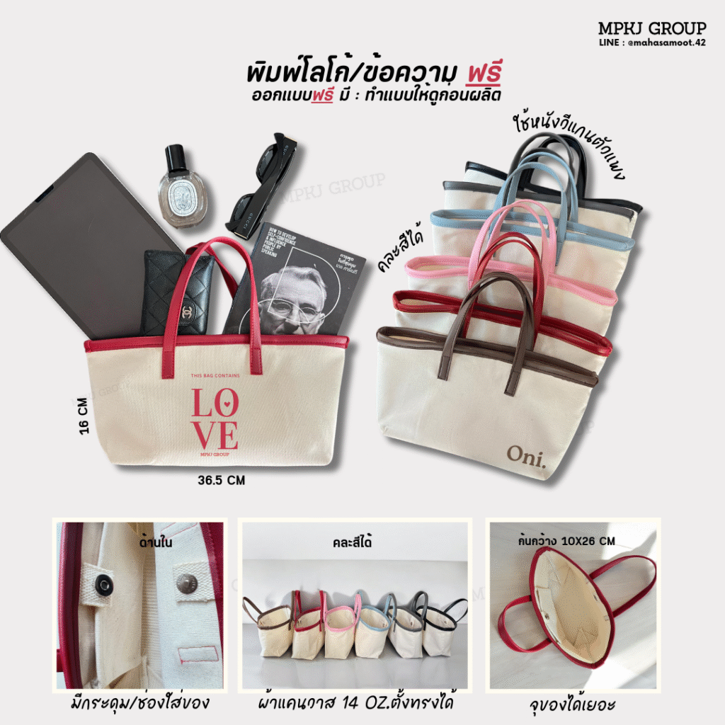 กระเป๋าผ้าแคนวาสขอบหนัง สัมผัสเดียวรู้เลยว่าของดี เกรดหนังสีแกนเดียวกับขายเข้าห้างใบหลักพัน สั่งพิมพ์โลโก้ฟรี