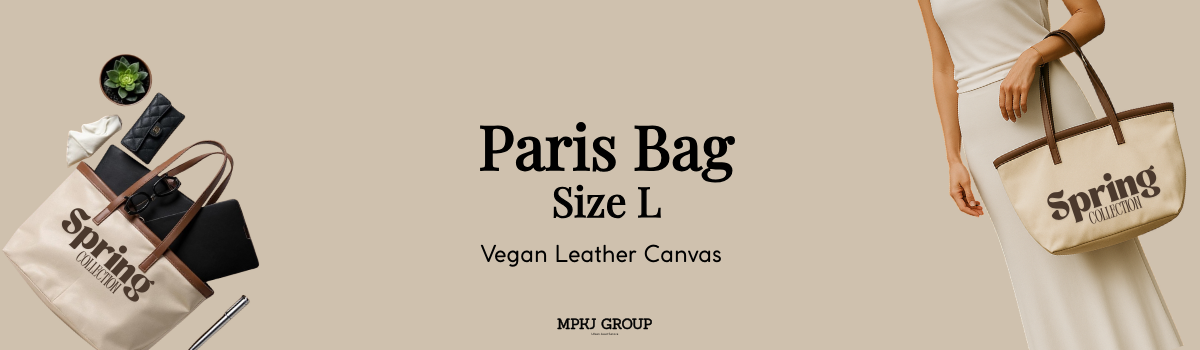 รุ่นParis มี 2 Size ที่มีสตอคพร้อมพิมพฺโลโก้รองรับงานด่วน คือ Size L แบบ Tote Bag จุของได้เยอะ และ Size S ใส่ไอแพดได้ พร้อมหนังวีแกนเกรดเหมือนขายในห้าง สวยคลาสสิค ผ้าแคนวาส 14 oz. ตั้งทรงสวย