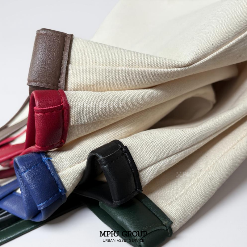 กระเป๋าผ้าแคนวาสขอบหนัง สัมผัสเดียวรู้เลยว่าของดี เกรดหนังสีแกนเดียวกับขายเข้าห้างใบหลักพัน สั่งพิมพ์โลโก้ฟรี